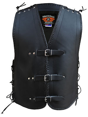 Mens Motorcycle Cruiser Club Buckle Vest 3mm Thick Cowhide Leather Nz Braiding Ebay